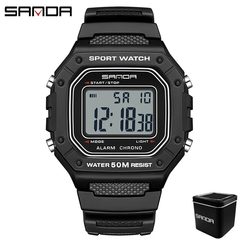 När du tränar, jobbar eller är ute på äventyr vill du ha en klocka som hänger med – en klocka som inte bara visar tiden, utan som ger dig funktionerna du behöver för att hålla fokus och prestera. LED sportklockan med rektangulär digital display är designad för män som lever aktivt och vill kombinera modern design med pålitlig funktion.