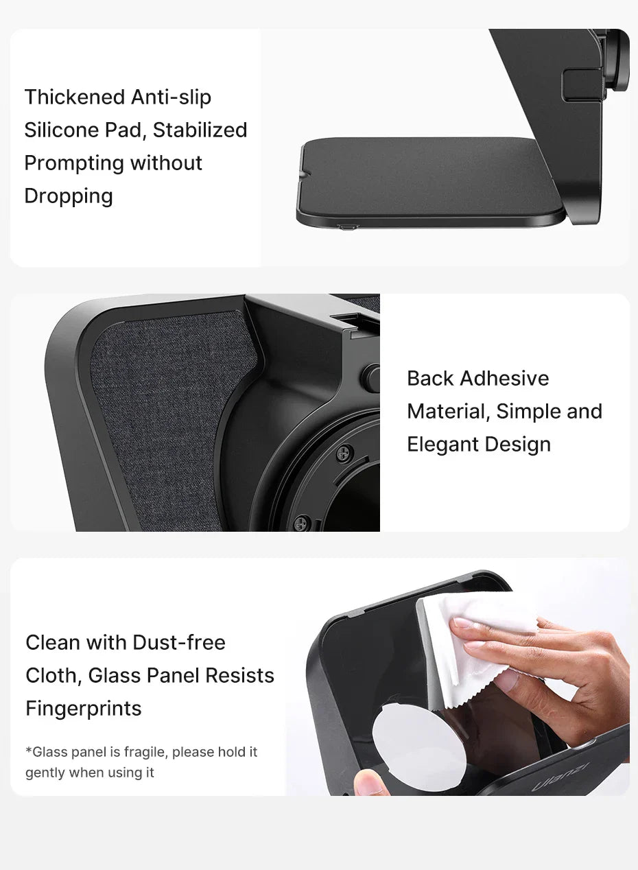 Känner du dig nervös eller tappar bort dig när du filmar? Med Ulanzi RT02 Universal Teleprompter får du dina manus och stolpar rakt framför ögonen – utan att det märks i kameran. Perfekt för YouTube, TikTok, livestreams, företagsvideos eller onlinekurser där du vill tala flytande och se professionell ut.