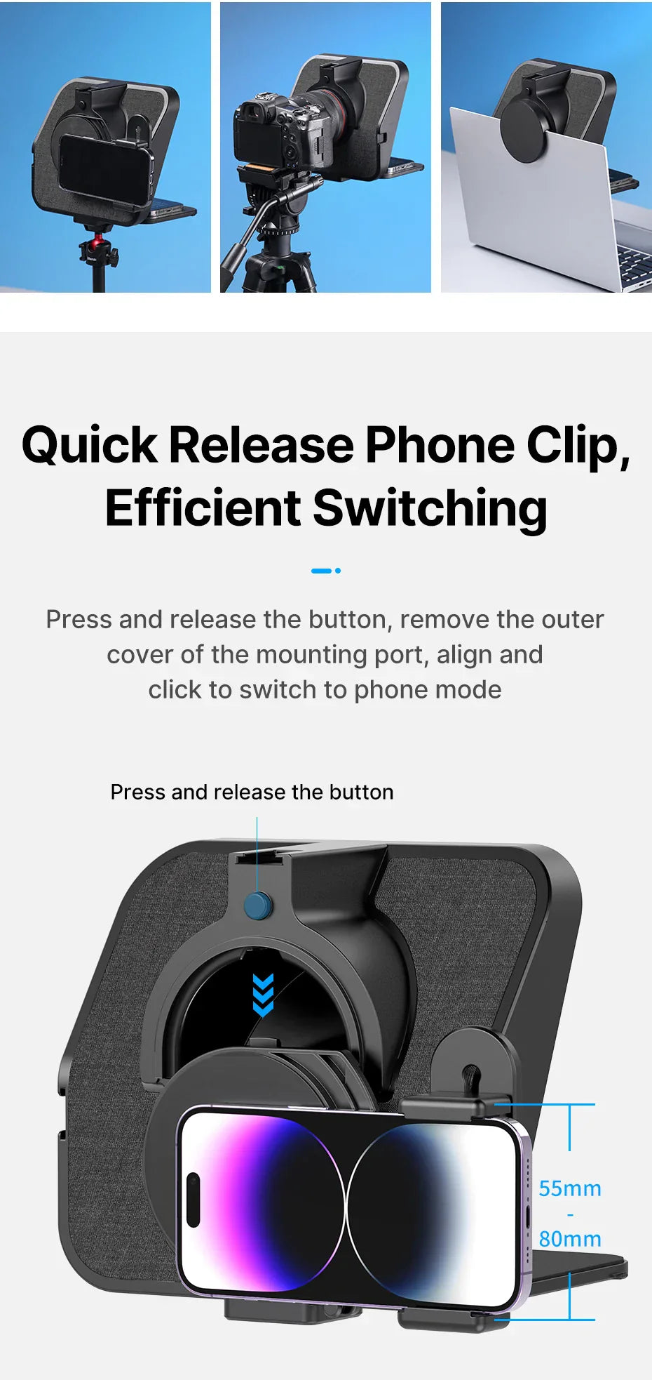 • Passar både kamera och mobil – fungerar med smartphones, systemkameror och laptops.