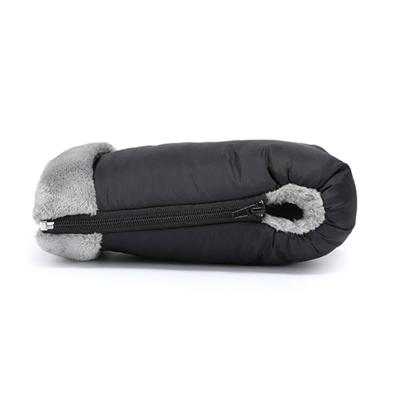 Till skillnad från vanliga vantar får du med Vagnmuffisar en varm, vindtät och vattentålig lösning som sitter fast direkt på barnvagnen