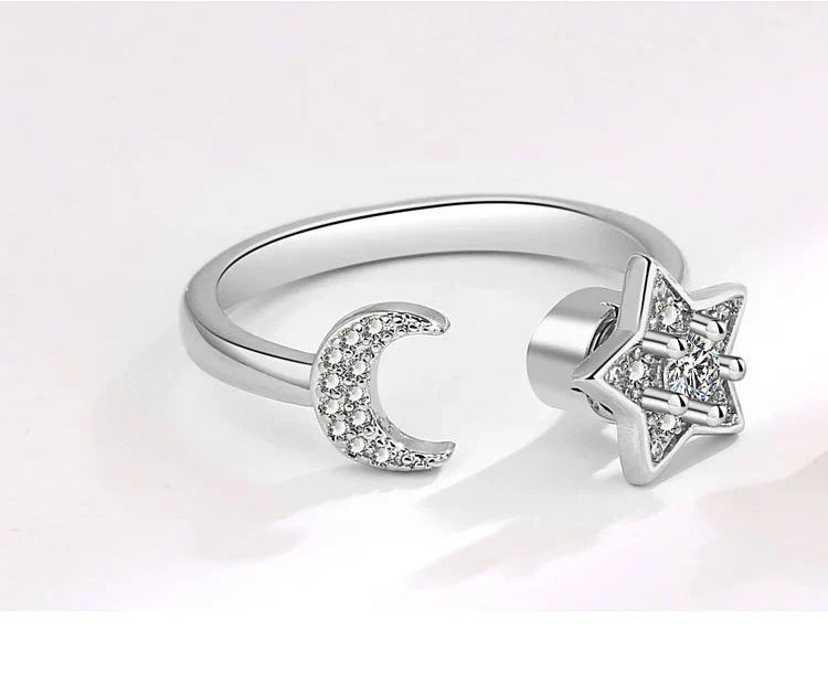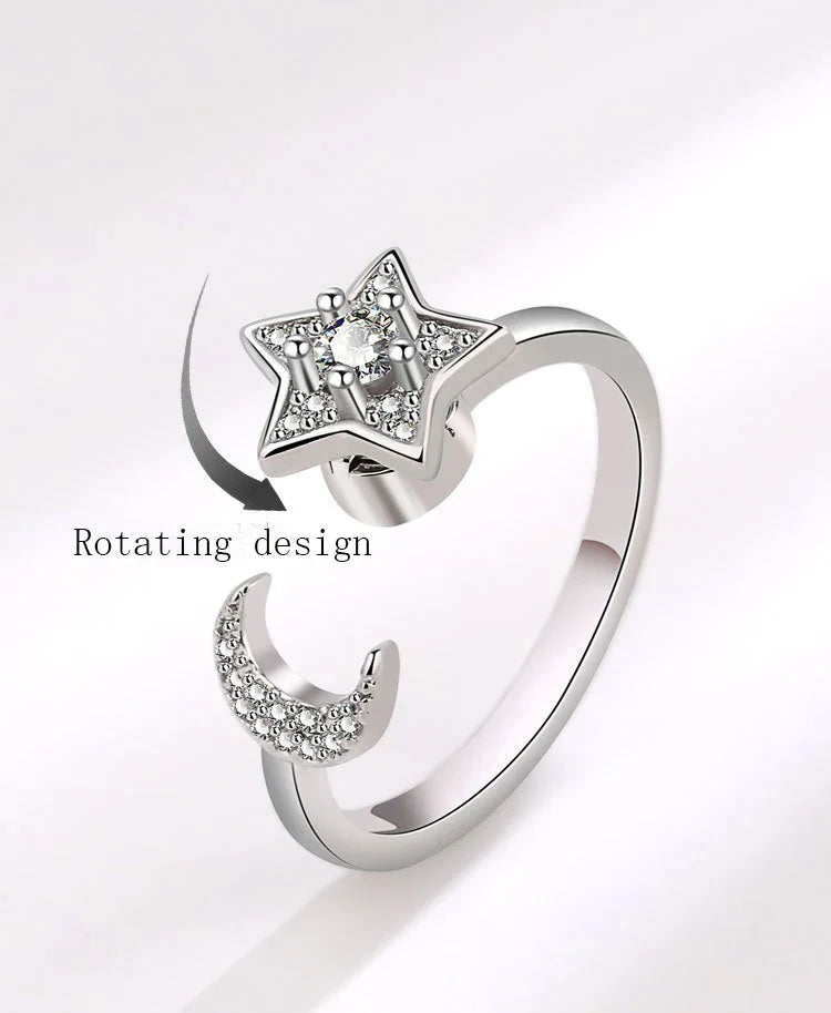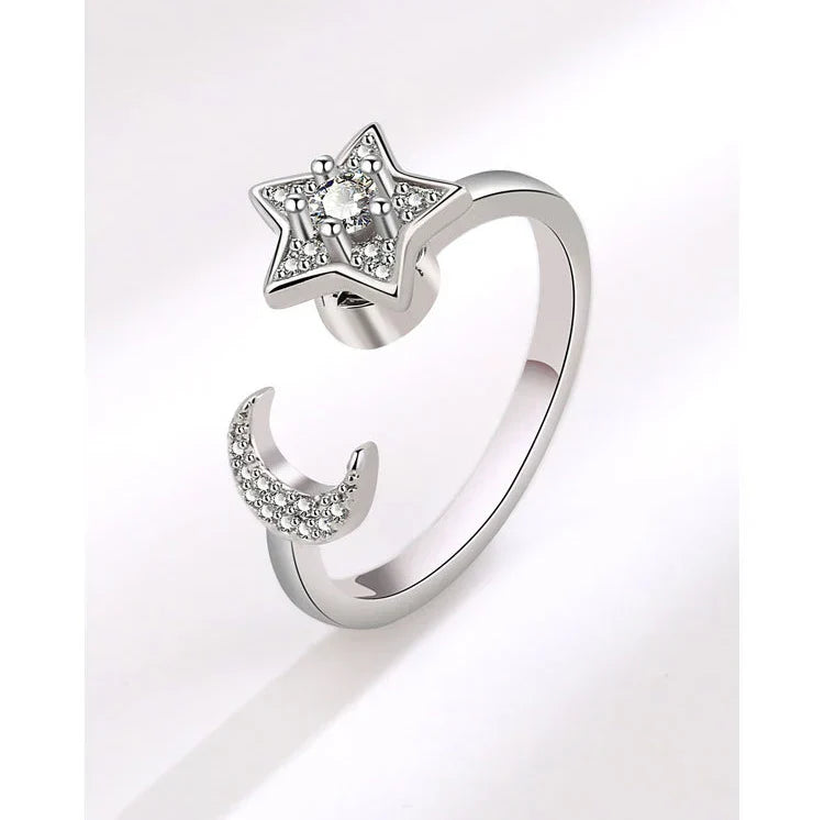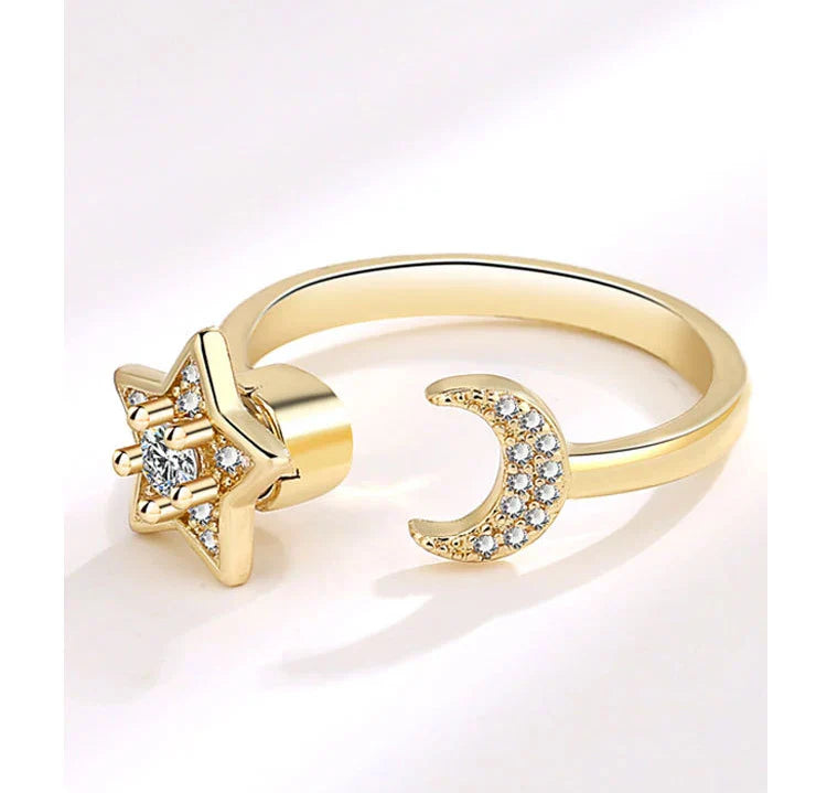 Stjärnring – snurrbar damring med mån- & stjärndetaljer