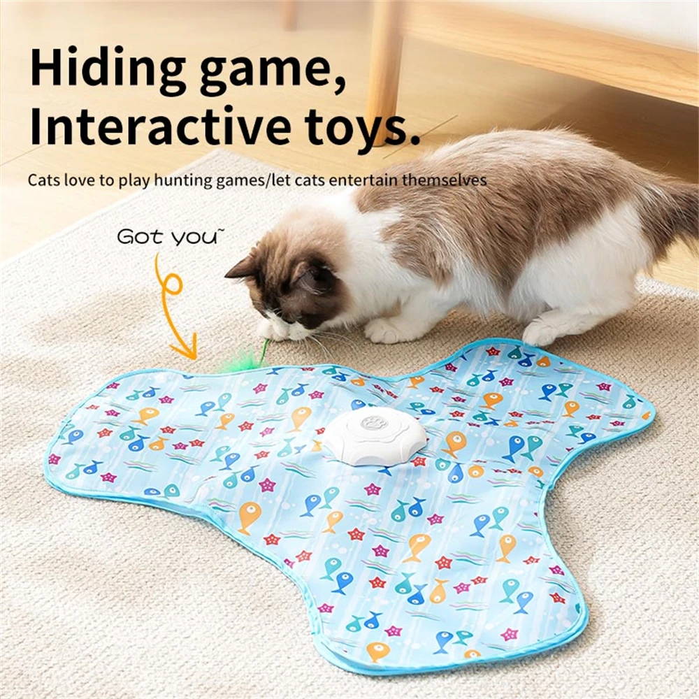 Interaktiv kattleksak – gömma & söka mus med fjäder & ljud
